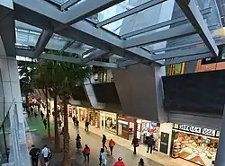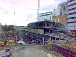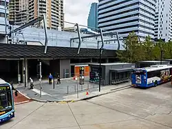 The new station precinct is known as the Chatswood Transport Interchange (CTI) and consists of the railway station, a bus interchange and pedestrian pathways connecting the precinct to the surrounding streets. The CTI was constructed as a Public Private Partnership and was to include a new shopping plaza called Metro Chatswood and three towers. The private developers, CRI Chatswood, went into receivership whilst construction was underway.[9] As a result, the shopping centre remained closed until 2014 and major construction of the towers was delayed for several years.