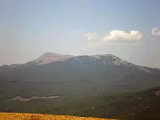 Chatyr-Dag (Ukrainian: Чатир-Даг; Russian: Чатыр-Даг; Crimean Tatar: Çatır Dağ, lit. 'Tent Mountain') is a mountainous massif in Crimea, near the Simferopol-Alushta highway.
