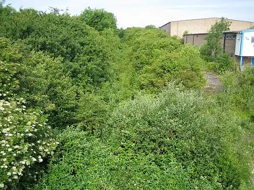 As part of the First World War war effort, a factory at Chaul End was taken over for the manufacture of shells.[13] A temporary halt to serve the factory was opened in 1914[14][15][16] or 1915[17][18][19] The station is believed to have been situated to the east of the level crossing.[20] Munitions workers using the station could be easily recognised by the orange-yellow dust from the powder with which shells were filled.[17][18] London and North Western Railway trains also called at the station from 28 February 1916;[17][18] tickets to the station showed it as "Luton (Chaul End)".[14] The factory itself was served by a siding capable of accommodating five wagons, which was taken out of use on 20 April 1916.[17][18]