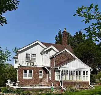 Twenty-nine houses were built in the subdivision between 1925 and 1930. Building slowed during the Great Depression when 12 houses were built. Between 1938 and 1941 another 51 houses were built. The houses are generally 1½ stories, constructed of brick and feature intersecting gables. They are primarily Tudor Revival in style. There are also some in a local style of based on the Tudor style known as “Beaverdale Brick.” Because Chautauqua Park was built as a commuter suburb, many of the houses were built with attached garages.