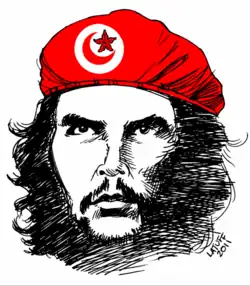 Appearances of Argentine Marxist revolutionary Che Guevara (1928–1967) in popular culture are common throughout the world. Although during his lifetime he was a highly politicized and controversial figure, in death his stylized image has been transformed into a worldwide emblem for an array of causes, representing a complex mesh of sometimes conflicting narratives. Che Guevara's image is viewed as everything from an inspirational icon of revolution, to a retro and vintage logo. Most commonly he is represented by a facial caricature originally by Irish artist Jim Fitzpatrick and based on Alberto Korda's famous 1960 photograph titled Guerrillero Heroico. The evocative simulacra abbreviation of the photographic portrait allowed for easy reproduction and instant recognizability across various uses. For many around the world, Che has become a generic symbol of the underdog, the idealist, the iconoclast, or the martyr. He has become, as author Michael Casey notes in Che's Afterlife: The Legacy of an Image, "the quintessential postmodern icon signifying anything to anyone and everything to everyone."[1]