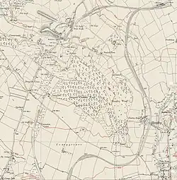 In 1849 the market town of Cheadle, population 3,000, was still without any form of rail transport. The North Staffordshire Railway had completed its Stoke to Derby line in 1848 and the Churnet Valley Line the following year but both of the lines missed the town, passing around 3.5 miles (5.6 km) to the south and north of Cheadle respectively.[1] The people of the town, along with several mines on the Cheadle Coalfield, wanted a rail connection as a means of transporting their goods. Several schemes for a branch line were proposed over the years; among these was a branch from the NSR east of Blythe Bridge and running via Forsbrook to Dilhorne and then Cheadle. Unfortunately, none of the schemes ever came to fruition.[2]