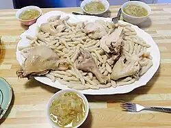 Chechen cuisine (Chechen: Нохчийн даар; Noxçiyn daar) encompasses the traditional cooking styles and dishes of the Chechen people of Chechnya (North Caucasus) and the Chechen diaspora. The mountainous geography of the region, as well as its history of warfare have had their influence on the traditional culinary practices of the Chechen people,[1] as has a strong culture of hospitality.[2]