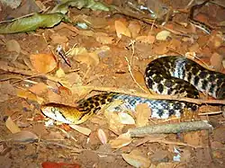 The checkered keelback (Fowlea piscator), also known commonly as the Asiatic water snake, is a common species in the subfamily Natricinae of the family Colubridae. The species is endemic to Asia. It is non-venomous.