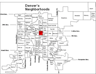 - ^ "Denver Maps" (Map). City and County of Denver. Retrieved April 26, 2016.
