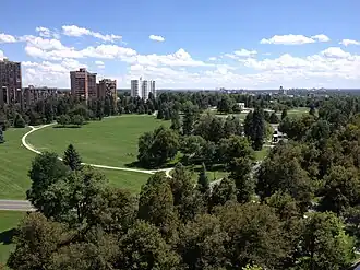 The neighborhood has a population density of more than 12,000 people per square mile, far exceeding Denver's average density of 3,600 people per square mile, due to the many high-rise and mid-rise apartments and condominiums surrounding the park.[23] However, the neighborhood contains not only modern, dense residential units; it also contains three of Denver's residential historic districts: Wyman's, Morgan's Addition, and Humboldt Island. These historic districts now preserve homes of a wide variety of architectural styles, from the late 19th century through the early 20th century.
