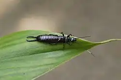 Chelisochidae is a family of earwigs[3][4] whose members are commonly known as black earwigs.[5] The family contains a total of approximately 96 species, spread across sixteen genera in three subfamilies.[6][7]
