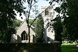 The parish church is dedicated to Saint John the Baptist and is mostly 13th century.[4] The north arcade is 1849-50 by Edmund Francis Law, a Northampton architect. It is a Grade II* listed building. Notable burials include Pollie Hirst Simpson.[5]