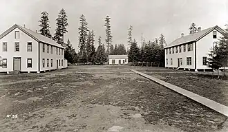 An initial site was developed on four acres of land near Forest Grove, Oregon with a budget of $5,000 appropriated.[9] With Indian affairs part of the bailiwick of the War Department, US Army Lieutenant Melville Wilkinson, secretary to General Oliver Otis Howard, was tapped to lead the project. Wilkinson, with the help of eight Puyallup Indian youths, began construction on first campus buildings in 1880.[9]
