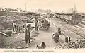 Contrary to these measures, the Ceinture Syndicate reversed its stance on freight traffic, and returned to its pre-Exposition Petite Ceinture freight itineraries in 1902.[68] One year later, they compensated the Ceinture Rive Gauche's freight insufficiency with the opening of a new freight-yard that had been in the works since 1879, 'Paris-Gobelins', in 1903.[69] Just to the west of there the same year, the Ceinture opened a 'Paris-Brancion' livestock station below the still-expanding 'Vaugirard' slaughterhouses,[70] and the Charonne-Marchandises freight-station expanded in 1904.[70]