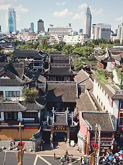 The City God Temple or Temple of the City Gods (Chinese: 上海城隍庙; pinyin: Shànghǎi Chénghuángmiào; Shanghainese: Zånhae Zenwånmio), officially the City Temple of Shanghai,[1] is a folk temple located in the old city of Shanghai. It commemorates the elevation of Shanghai to municipal status and is the site of the veneration of three Chinese figures honored as the city gods of the town. It is also known by some locals as the "Old City God Temple", in reference to a later "New City God Temple" which no longer exists.
