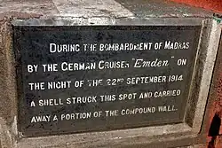 By the late 18th century, most of the southern region of India had been conquered by the British and Madras was established as the capital of the Madras Presidency.[16] During this period, the port flourished under the British rule, becoming an important naval base and urban center. A port at Madras was first suggested by Warren Hastings in 1770 when he was posted here, who later became the first Governor General of India.[3][17] However, it was not until the 1850s that work began on a pier to berth vessels following suggestions from the Madras Chamber of Commerce and Industry. Till 1815, it was an open roadstead and exposed sandy coast, swept by occasional storms and monsoons. At the time, the natural harbour was so shallow that ships had to anchor over 1 km (0.62 mi) offshore, and cargo was delivered to and from the shore in masula boats[18][19] and catamarans.[20] Cargo losses were high, close to 90 percent, in addition to pilfering with several goods from the ships often taken to the nearby evening bazaar.[3] A 335 m (1,099 ft) iron-screw pile pier capable of berthing larger vessels was built perpendicular to the shore in 1861.[21] However, the storms of 1868 and 1872 made the initial piers inoperative. In 1875, Edward VII laid the foundation stone for a new port,[3] and the masonry work for L-shaped breakwaters was started in 1876. The northern and southern groynes of the harbour were constructed, to create a still water enclosure that would be unaffected by storm and surf water. However, the groynes collapsed in 1877. The same year, construction of the south pier was commenced with concrete blocks weighing 33 tonnes each brought from Pallavaram,[3] and the port started handling ships inside the harbour from 1881. However, again the storm of 12 November 1881 completely washed the almost-completed harbour, breaching over half a mile of breakwater.[21] An artificial harbour was then built and the operations were started in 1881, and the pier was rebuilt in 1885, although there was a demand for relocating the entrance. Work on the harbour was completed in 1911.[17] The Chennai Port Trust has taken the year 1881, the year of rebuilding, as the starting year. The cargo operations were carried out on the northern pier, located on the northeastern side of Fort St. George in Chennai. In the first couple of years the port registered traffic of 300,000 tonnes of cargo handling 600 ships. The first railway line in South India was laid between Madras and Arcot which started operating in 1856. By the late 19th century, the port was well connected to the other two important cities in the British colony, viz. Bombay (Mumbai) and Calcutta (Kolkata).[22] In 1904, a new northeastern entrance was added to control siltation in the basin, after closing the original eastern entrance. The port's quays (berths) were constructed at different periods—the South Quay I in 1913, the five west quay berths between 1916 and 1920, the north quay in 1931 and the South Quay II in 1936, in the Inner Harbour, later christened Dr. Ambedkar Dock.[21] Chennai was the only Indian city to be attacked by the Central Powers during World War I[23] when a German cruiser, SMS Emden, shelled the oil depot within the port belonging to the Burmah Oil Company and raided vessels in 1914 disrupting trade, resulting in the death of at least 5 sailors.[3] Other than Calcutta, which was practically taken over by the American army,[24] Chennai port was the only other operational one in eastern waters during the Second World War.[20] In 1911, the Royal Madras Yacht Club (RMYC), which is based within the Chennai Port premises, was founded by Sir Francis Joseph Edward Spring, the first chairman on the Madras Port Trust who was responsible for Chennai becoming a trading hub, especially during World War II.[17][20] In 1916, the harbour office building was constructed.[21]