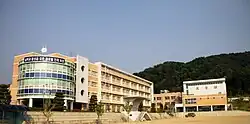 The school is located in the city of Cheonan in the province of Chungcheongnam-do, often called Chungnam-do for short. Cheonan is about 1 hour south of Seoul by train, but can be accessed faster by the KTX passing through Cheonan-Asan Station. There is also a subway line (Seoul Subway Line 1) running from Seoul to Cheonan that takes about 2+1⁄2 hours. The school was originally located in Wonseong-dong until 1974 when it moved to Samryeong-dong, under Mount Mamang and next to Samgeori Park on the outskirts of the city. The location is at the foot of the mountain surrounded by farms, making the school a very fresh and natural environment for the students. The walk up the hill to the school is a notable feature for the students, who either remember the walk fondly, or otherwise.