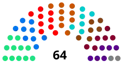 Council members are elected for five year terms. In order to gain representation in the council, a party must gain more than 5 percent of the total vote.[2]