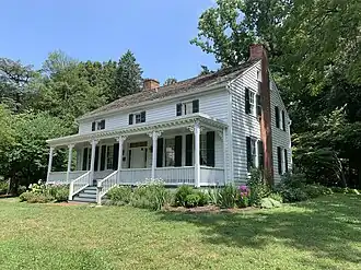 From 1870 to 1945 the house belonged to the Riley family who were prominent in the village; it was Joseph Riley that in 1875 lead the effort to petition the state for Falls Church to become a town. At that time the town included parts of Fairfax and Alexandria Counties (now called Arlington County). The poet James Whitcomb Riley, a relative of the owners and visitor to the farmhouse, included references to the farmhouse and some of its residents in some of his poems.[3] The farmhouse, barn, and outbuildings were bequeathed to the University of Virginia in 1945, and the school owned it until 1956 when the City of Falls Church purchased them along with the rest of the property bounded by Park Avenue, Little Falls Street, and Great Falls Street.[4] Then, in the 1960s, a number of local history lovers created the Friends of Cherry Hill to restore the house to the period of its construction and make a house museum to exhibit the lifestyle of the prosperous families of the area. It provides a glimpse of the antebellum times in Falls Church and later in the Victorian period. The docents provide the history of the house, the local area at the time, and the connection to the national affairs. Nowadays the house is included within a 7-acre park.[3]