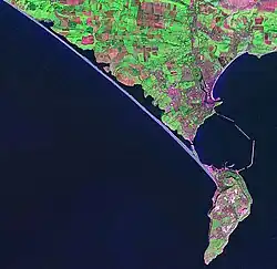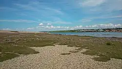 Chesil Beach (also known as Chesil Bank) in Dorset, England, is one of three major shingle beach structures in Britain.[2] Behind the beach is the Fleet, a shallow tidal lagoon.