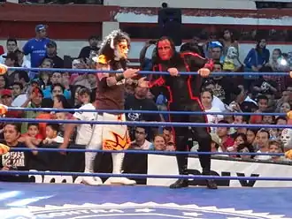 - ^ The last two men in a nine-man steel cage match that also included Pagano, Texano Jr., Mr. Águila, Máximo, Mocho Cota Jr., Carta Brava Jr., and Averno.[57]