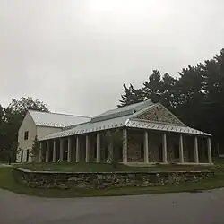 The two-story L-shaped building is sited on a partially wooded 1.8 acre-site not far from the location of the original meetinghouse. Emphasis was placed on green architecture, sustainability and environmentally friendly construction practices.[3][8] Built in a former quarry, the surroundings are naturally landscaped and include green stormwater management features. The building was expected to meet LEED platinum standards of construction.[15]