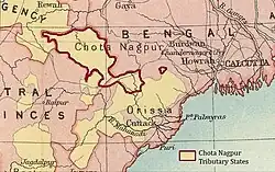 The Chota Nagpur Tributary States[1] or Chota Nagpur States were a group of small, non-salute states (minor princely states) during the British Raj in India, located on the Chota Nagpur Plateau. British suzerainty over the states was exercised through the government of the Bengal Presidency.