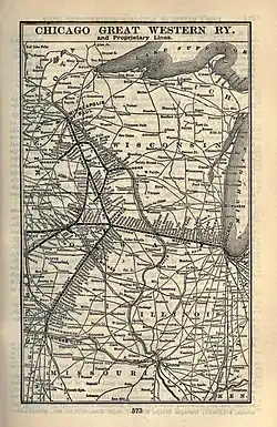 - ^ "A Brief History of the Construction and Operation of Chicago Great Western Railway Company," Trainweb.org website (www.trainweb.org/ucgw/hsfcgw10.htm). Retrieved March 6, 2025.