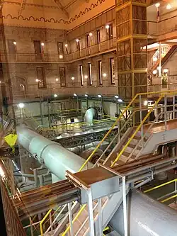 In 2003 and 2004 the building underwent an award-winning adaptive reuse project, in which much of its interior was converted to a theater space which now houses the Lookingglass Theatre Company. The redevelopment projects carried out at this time include roof deck replacement, façade restoration, exterior architectural lighting improvements, landscaping improvements, and lead paint abatement. The remainder of the building still serves as an active pumping station, as of 2018.[3]