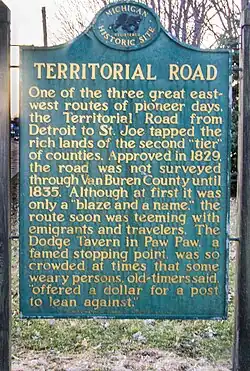 - ^ "Historical Marker - S163 - Territorial Road (Marker ID#:S163)" (PDF). Michigan Department of Natural Resources.