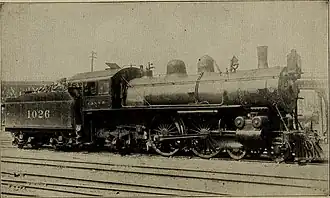 | _(14753395776).jpg) CNW 1026, one a batch of locomotives fitted with Young valve gear and Young rotary valves. | |||||||||||||||||||||||||||||||||||||||||||||||||||||