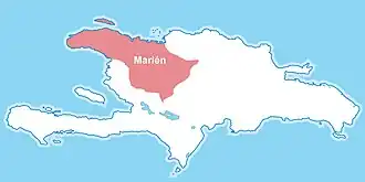 The boundaries of each cacicazgo were precise. The first inhabitants of the island used geographic elements as references, such as major rivers, high mountains, notable valleys and plains. This enabled them to define each territory.[6] Each was divided into cacique nitaínos, subdivisions headed by the cacique helpers. The entries below relate the territory of each former cacique to the modern-day provinces of the Dominican Republic and the departments of Haiti.