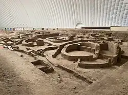 According to archeological studies, human occupation of the Chifeng area can be traced back at least ten thousand years, and Neolithic cultural history can be traced back nearly eight thousand years. Representative ruins and relics of Hongshan Culture, Grassland Bronze Culture, Khitan Liao Culture and Mongol-Yuan Culture have been discovered in Chifeng. The ruins of an ancient village, named Xinglongwa, and the biggest jade dragon unearthed in the area are noted as "the first village" and "the first dragon" by some. The discovery of ruins and relics of ancient cultures have come from more than 6,800 sites. Named after Chifeng's Hongshan District, Hongshan Culture was a Neolithic culture in northeastern China, whose sites have been found mainly in Chifeng, and dated from about 4700 to 2900 BC.[4]