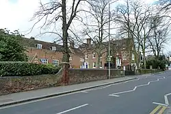 In 1868, the school was split into two sections. The English section for local children studying arithmetic, reading and writing was housed in a building behind the King's Head public house, which was mentioned in Charles Dickens' novel Barnaby Rudge: A Tale of the Riots of 'Eighty. The Latin section (for Latin scholars only) remained in the original building. Rather unusually for a boys' school at that time, in 1873, it started a bursary programme for girls to attend other schools.