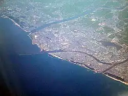 ![]() The Shinano River in Niigata just before it flows into the Sea of Japan | |