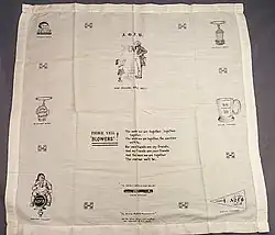 An ancient Order of Froth Blowers handkerchief, a humorous British charitable organisation, with the lyrics "The More We Are Together", a popular British children's song from the 1920s