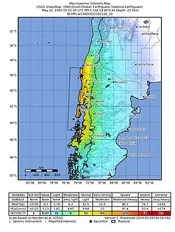 - ^ a b "M 9.5 - 1960 Great Chilean Earthquake (Valdivia Earthquake)". USGS ShakeMap. Retrieved 21 September 2023.