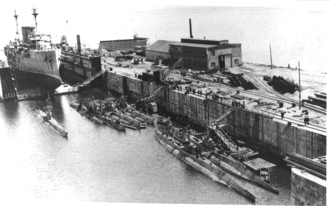 Group 1 was built in Canada at the Canadian Vickers Yards in Montreal before being transported across the Atlantic and deployed from Britain as British shipyards were too busy to construct submarines at this time: