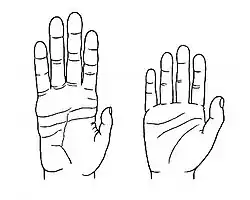 Chimpanzee hand (left) compared to human hand
