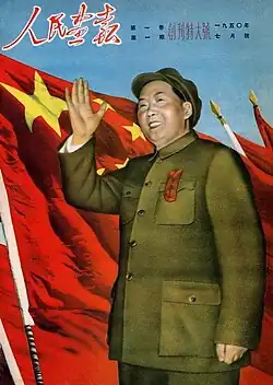 The China Pictorial, known in Chinese as Renmin Huabao (simplified Chinese: 人民画报; traditional Chinese: 人民畫報; lit. 'People's Pictorial') is a Chinese monthly magazine first published in 1950. The title of the magazine was handwritten by Mao Zedong. It was one of four publications allowed during the Cultural Revolution in China. The magazine was instrumental to promote the revolution.[1]