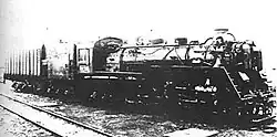 Needing a replacement for the Sorii-class locomotives transferred to the Manchukuo National in 1933, Mantetsu ordered the construction of replacements for use on light freight trains and for shunting duties. The result was the Mikasa (ミカサ) class, which was a smaller, lighter version of the Mikai-class 2-8-2s already in service,[1] and 43 were built in Japan for Mantetsu in 1934 by Kawasaki, Kisha Seizō, Hitachi, and Nippon Sharyō. Numbered 1400 through 1442, the last 22 - 1421 through 1442 - were built with a sloped tender designed to allow greater rearwards visibility during shunting operations. Later, some were fitted with a booster engine for use on mountainous lines.