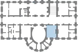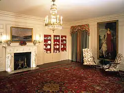 The China Room is one of the rooms on the Ground Floor of the White House, the home of the president of the United States. The White House's collection of state china is displayed there. The collection ranges from George Washington's Chinese export china to Barack Obama's blue and white themed collection. Almost all administrations are represented with a collection; however, a few are not - most recently, the Trump administration did not have a collection created and instead mainly used the china designed by Hillary Clinton during her time as First Lady.[1] The room is primarily used by the first lady for teas, meetings, and smaller receptions.