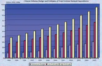 - ^ Sun, Xiuping; Qing, Mu; Xin, Bin. "2019年中国国防预算公布:比去年增速下降,仍为个位数_发展" [2019 China National Defense Budget Announcement: Growth Rate Decreased from Last Year, Still in Single Digits_ develop]. www.sohu.com. Retrieved 2023-09-30.