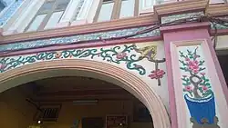 The early Chinese residents chose to build the shophouses near the bank of Terengganu River since the location provides a place for junks and ships to harbour.[9] Like a typical Chinatown in other Malaysian states, the buildings incorporate various styles such as traditional Southern Chinese designs,[2] Neoclassical, or Art Deco.[10] The façades of these shophouses differ according to their styles. Neoclassical buildings, for instance, are rather elaborate and ornate in its decorations, while older buildings are generally bare and simple.
