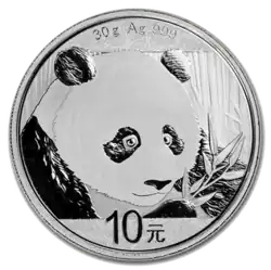 The Chinese Silver Panda (Chinese: 熊猫银币; pinyin: xióngmāo yínbì) is a series of silver bullion coins issued by the People's Republic of China. The design of the panda is changed every year and minted in different sizes and denominations, ranging from 0.5 troy oz. to 1 kilogram. Starting in 2016, Pandas switched to metric sizes. The 1 troy ounce coin was reduced to 30 grams, while the 5 troy ounce coin was reduced to 150 grams. There is also a Gold Panda series issued featuring the same designs as the Silver Panda coins.
