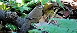 It is a skulking bird which is often very difficult to see. It typically feeds on the ground among leaf litter, foraging for insects and fruit. It usually occurs in pairs or in small groups.