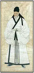 Cizang (慈藏), a Silla monk, studied Vinaya in China and when he returned to Silla, he promoted Dharma in 643.[9] Cizang also contributed to the change of Silla's imperial or official dress for the customs of the Tang, which also marked the beginning of Chinese clothing rituals in Silla.[9] During the reign of Queen Jindeok, Kim Chunchu adopted the Tang dynasty dress and encouraged the Silla kingdom to adopt Chinese administrative practices.[10] The danryeong was thus introduced from the Tang dynasty by Kim Chunchu in the second year of Queen Jingdeok's rule.[11]