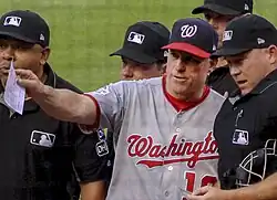 Then, in November 2017, the Washington Nationals hired Hale as their bench coach.[23][12] On October 29, 2019, in Game 6 of the World Series, he became the acting manager for the Nationals after Dave Martinez was ejected in the 7th inning. Hale and the Nationals maintained their lead, garnering a 7-2 win to force a Game 7, thus paving the way to winning the franchise’s first World Championship, the following night.[24]
