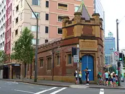 Chippendale has a number of heritage-listed sites, including the Regent Street railway station or 'Mortuary Station', located on the eastern side of the suburb.[4] The John Storey Memorial Dispensary was built in 1926 as a memorial to John Storey, a former Premier of New South Wales. It is located on Regent Street and still functions as a pathology and methadone clinic.