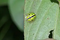 Chiridopsis bipunctata, commonly known as Indian green tortoise beetle or sweetpotato tortoise beetle, is a species of leaf beetle found in India, Thailand and Sri Lanka. They are often seen on plants in the family Convolvulaceae.[1][2][3][4][5]