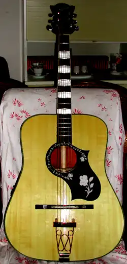 The chiterra sarda (Sardinian for "Sardinian guitar") or chitarra sarda in Italian, is a large-bodied baritone guitar from Sardinia used primarily to accompany singers in the cantu a chiterra genre. The body is larger than a dreadnought guitar with a scale length of about 680mm.[1] In Italian, it also goes by the names chitarrone and chitarra gigante, both referring to its large size.[2]