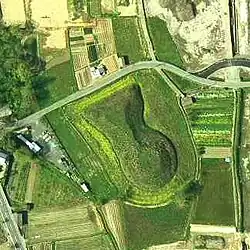 The Chitose-Kurumazuka Kofun (千歳車塚古墳) is a Kofun period burial mound, located in the Chitose neighborhood of the city of Kameoka, Kyoto in the Kansai region of Japan. The tumuli was designated a National Historic Site of Japan in 1982.[1] It is estimated to have been built in the first half of the 6th century (the first half of the late Kofun period), and is the largest tumulus in the Tamba region. Per local legend, it is the tomb of King Yahiko (the 14th grandson of Emperor Chuai).