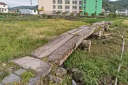 The Chixi Wudong Bridge was included in the sixth batch of national-level key cultural relics protection units on May 25, 2006.[3] The date of the construction of the bridge is unknown, but it was rebuilt in the third year of Xianchun in the Southern Song Dynasty (1267). It is a five-hole beam stone bridge with a north–south direction, 24.6 meters long and 1.7 meters wide.[4]