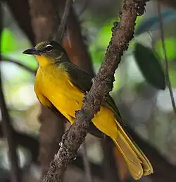 - ^ BirdLife International (2018). "Chlorocichla flaviventris". IUCN Red List of Threatened Species. 2018: e.T22712865A131967581. doi:10.2305/IUCN.UK.2018-2.RLTS.T22712865A131967581.en. Retrieved 17 November 2021.